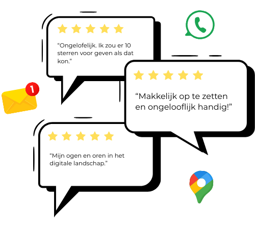 Stop met tijd en omzet verliezen door gemiste reviews of gemiste leads. Met onze slimme AI-tools werk je efficiënter, verzamel je meer reviews en bouw je sneller vertrouwen op bij nieuwe klanten.