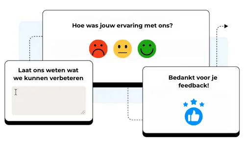 Negatieve feedback wordt eerst privé naar jou doorgestuurd, zodat je deze persoonlijk kunt opvolgen. Hierdoor komen alleen de positieve reviews online zichtbaar.