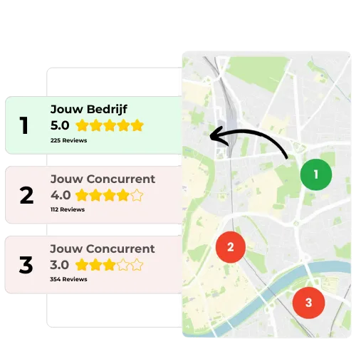 Hoe meer reviews je hebt, hoe hoger je bedrijf scoort in de lokale zoekresultaten. Verschijn je boven je concurrenten? Dan word jij automatisch de eerste keuze.